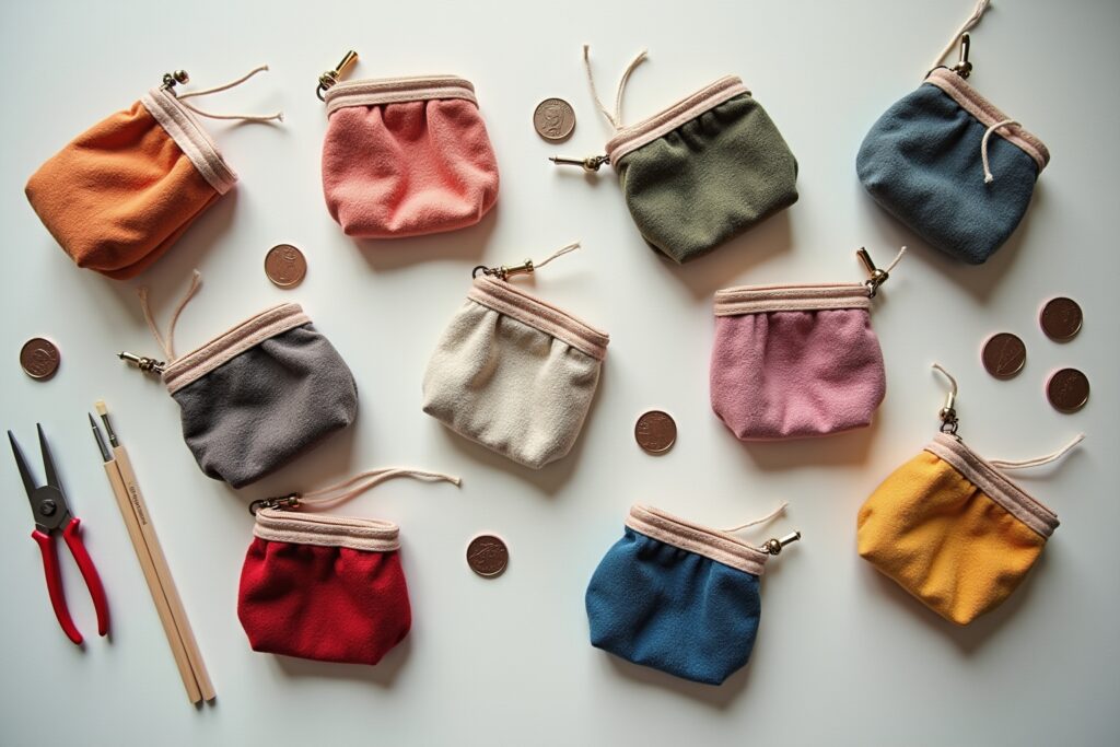 - Rundes oder ovales Münztäschchen: Eine Form-Herausforderung. Das Nähen von Kurven erfordert etwas Übung, aber ein rundes oder ovales Täschchen ist eine charmante Alternative zum Rechteck. Perfekt für eine kleine Münzsammlung.