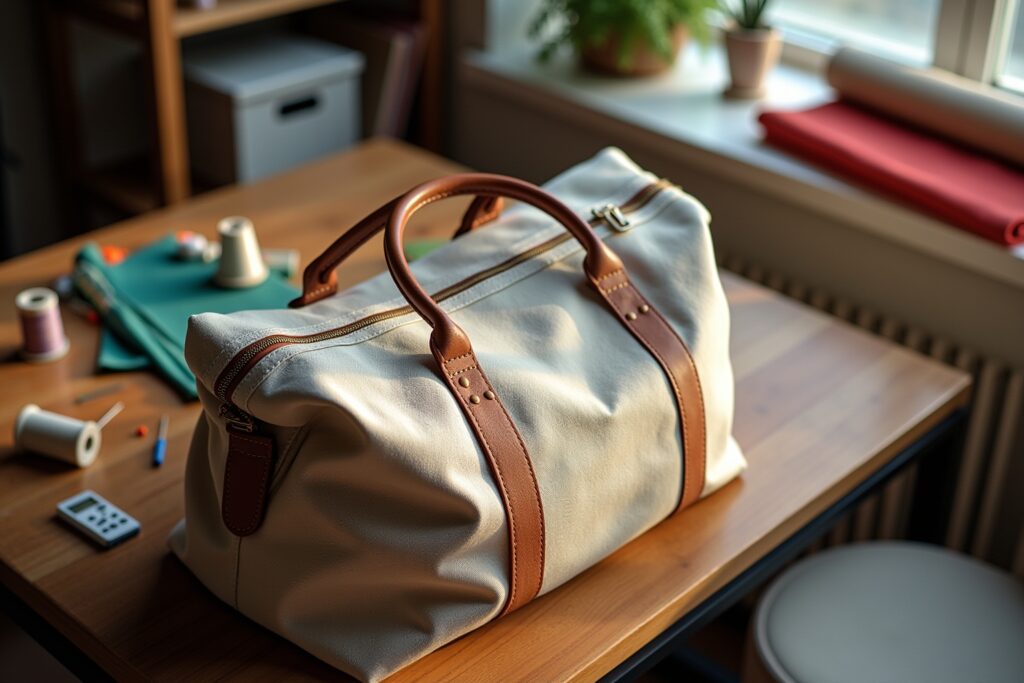 Besonders wichtig ist das saubere und feste Vernähen aller Teile, da die Tasche einiges Gewicht tragen muss. Das korrekte Anbringen von Henkeln und Gurtbändern ist entscheidend für die Haltbarkeit. Auch das präzise Einarbeiten des Reißverschlusses erfordert Sorgfalt, um eine reibungslose Funktion zu gewährleisten.